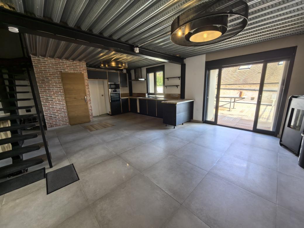 Une maison de ville d’une surface habitable d’environ 80m² comprenant au rez de chaussée entrée sur pièce principale avec cuisine ouverte équipée, wc.