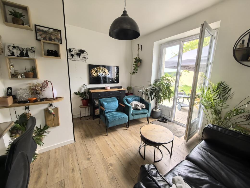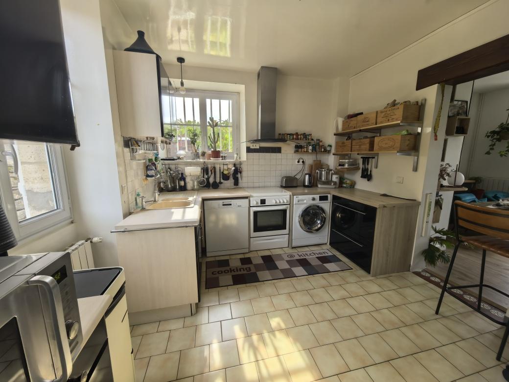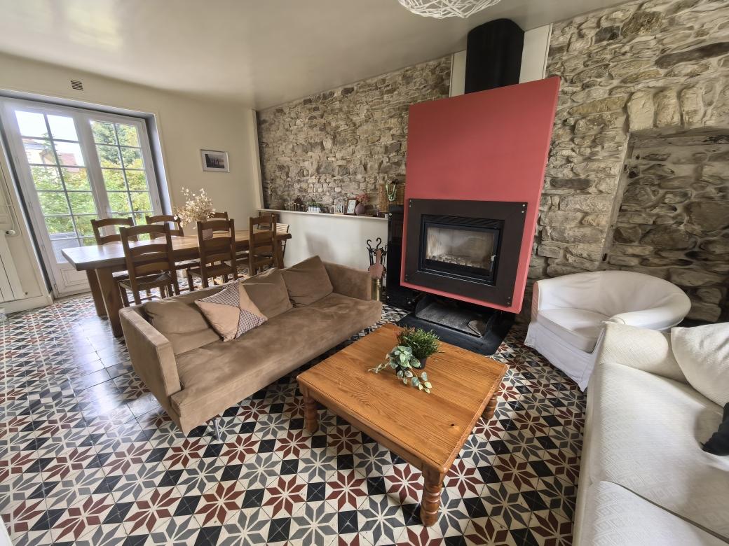 Une maison à usage d’habitation comprenant au rez de chaussée, entrée, séjour avec cheminée, cuisine, au premier étage trois chambres dont une avec salle d’eau, bureau, salle d’eau, wc.