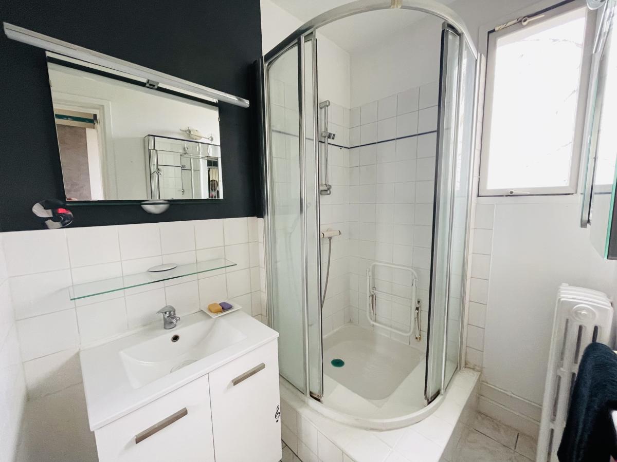 Trois pièces de 56.83m² Loi Carrez, comprenant une entrée, cuisine américaine, salon, deux chambres dont une avec balcon. Salle d’eau, wc indépendant.