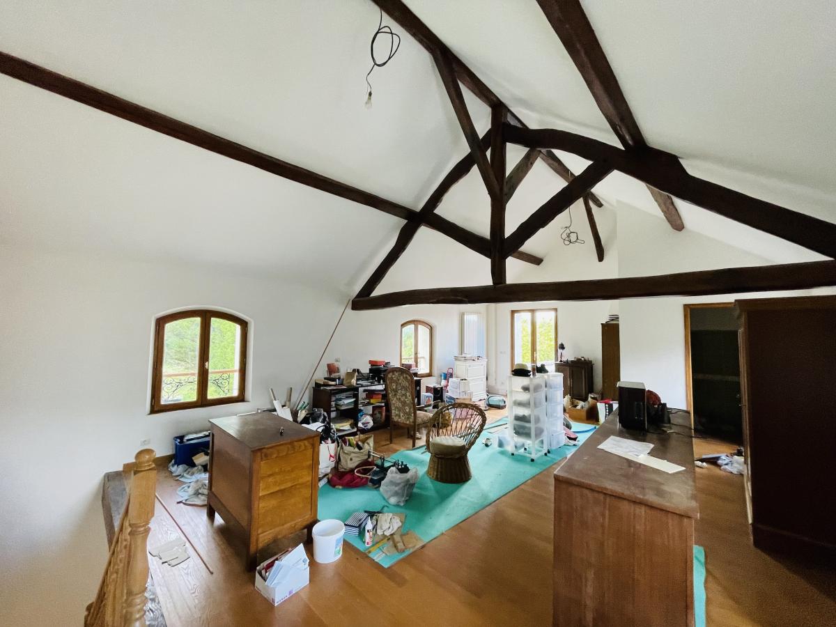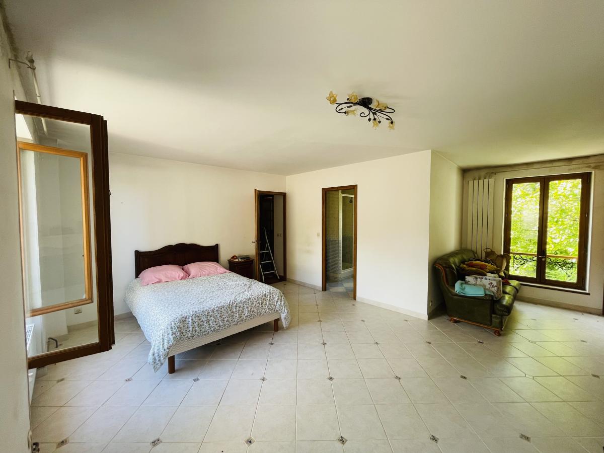 VIAGER OCCUPE – Maison à usage d’habitation de 241m² habitable sur deux niveaux, comprenant une entrée sur cuisine, couloir, double salon, dégagement, placards, wc, salle d’eau, chambre en plain pied, à l’étage surface palière avec espace bureau, trois chambres, salle de bains, salle d’eau avec wc, local chaudière. En dernier étage espace de vie avec accès terrasse. Garage extérieur, le tout sur un jardin clos de 2219m².