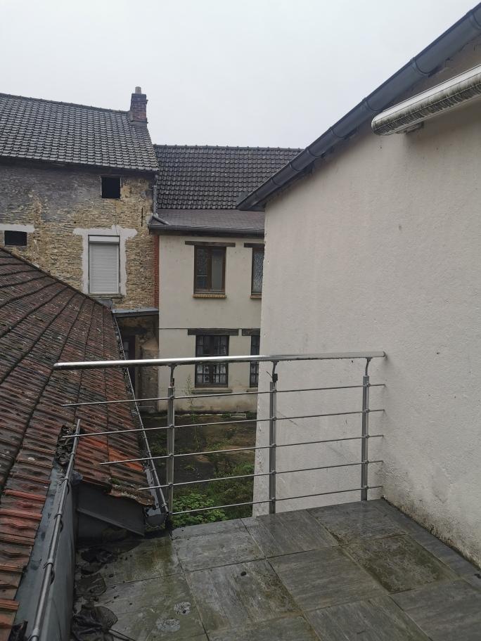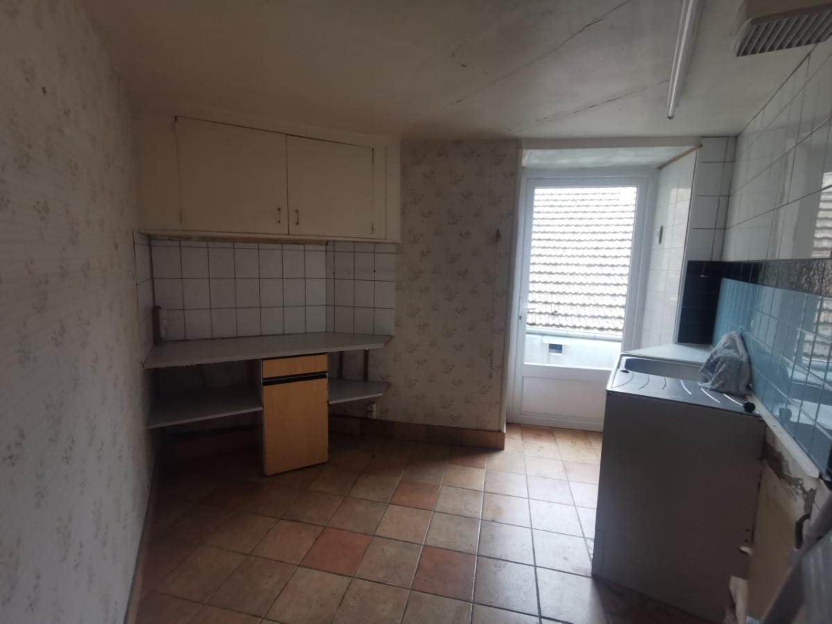 En mitoyenneté, une maison de ville offrant 98m² comprenant une entrée, séjour, une cuisine, couloir desservant deux chambres, une salle d’eau, un local débarras.