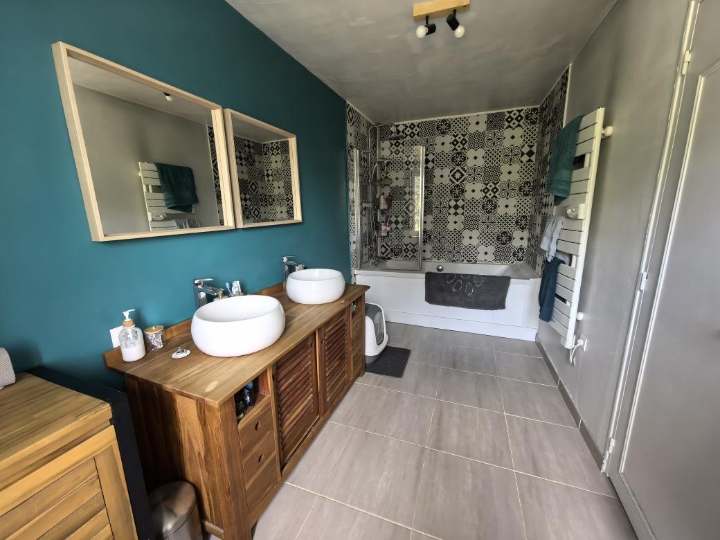 Garage, parking privatif pouvant accueillir 4 véhicules. Terrasse et terrain de 575m².