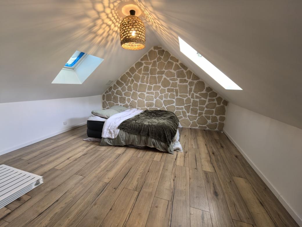Une maison à usage d’habitation de 83m² habitable (surface utile 138m²) comprenant cuisine indépendante équipée, séjour, WC, pièce. Au premier étage chambre, WC, Salle de bains. Au deuxième étage combles aménagés en une chambre.